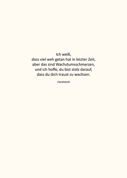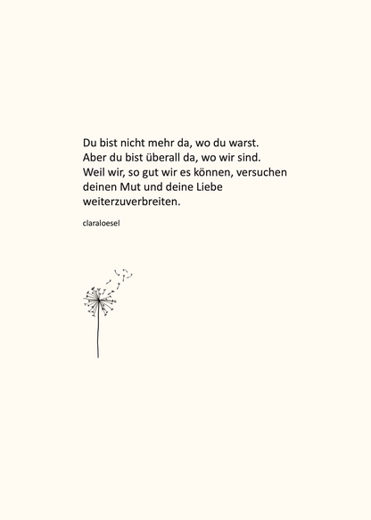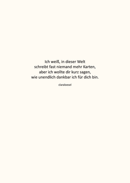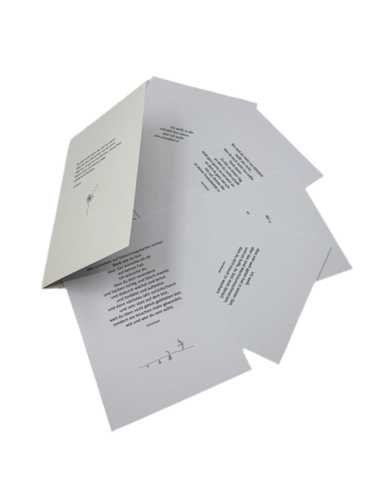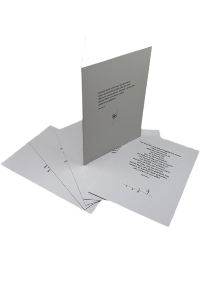 Wie oft fragt man sich: Was soll ich nur schreiben? Diese 6 Karten machen es für dich, indem sie genau die richtigen Worte für jede Situation finden. Und trotzdem ist auf der Rückseite noch Platz, deine eigenen Gedanken hinzuzufügen. Egal ob Geburtstag, Trauerfall, Weihnachten oder Freunde, die eine schwere Zeit durchmachen, so hast du für das nächste Jahr immer direkt die richtige Karte parat.
